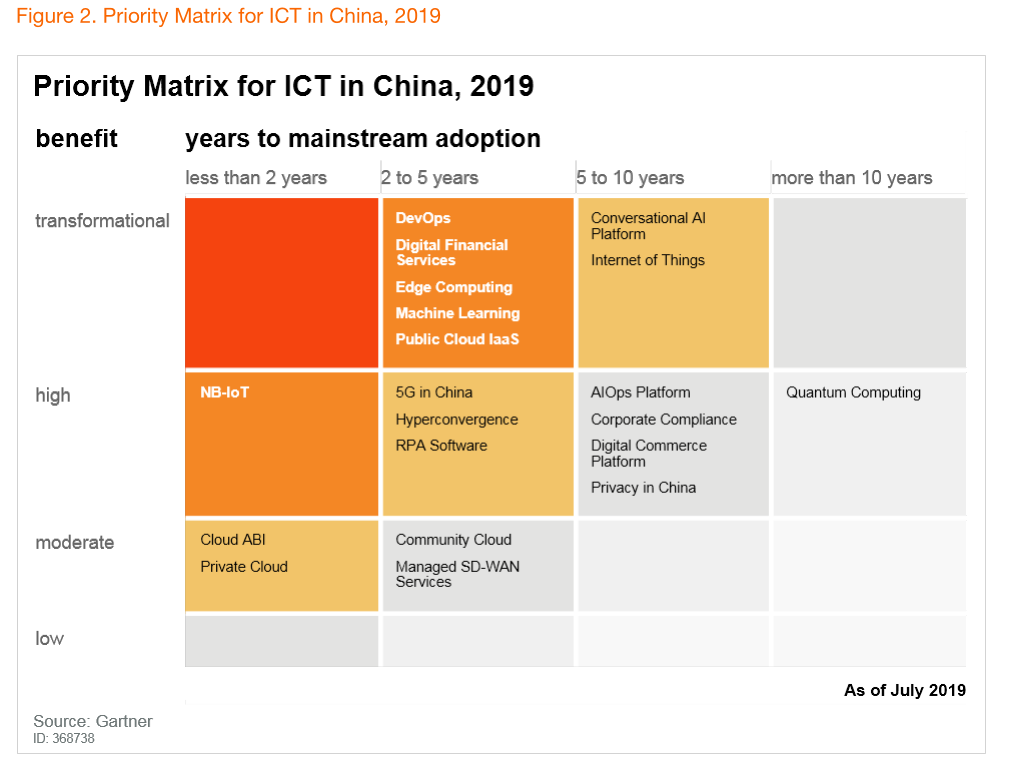 来源:Gartner “Hype Cycle for ICT in China, 2019”