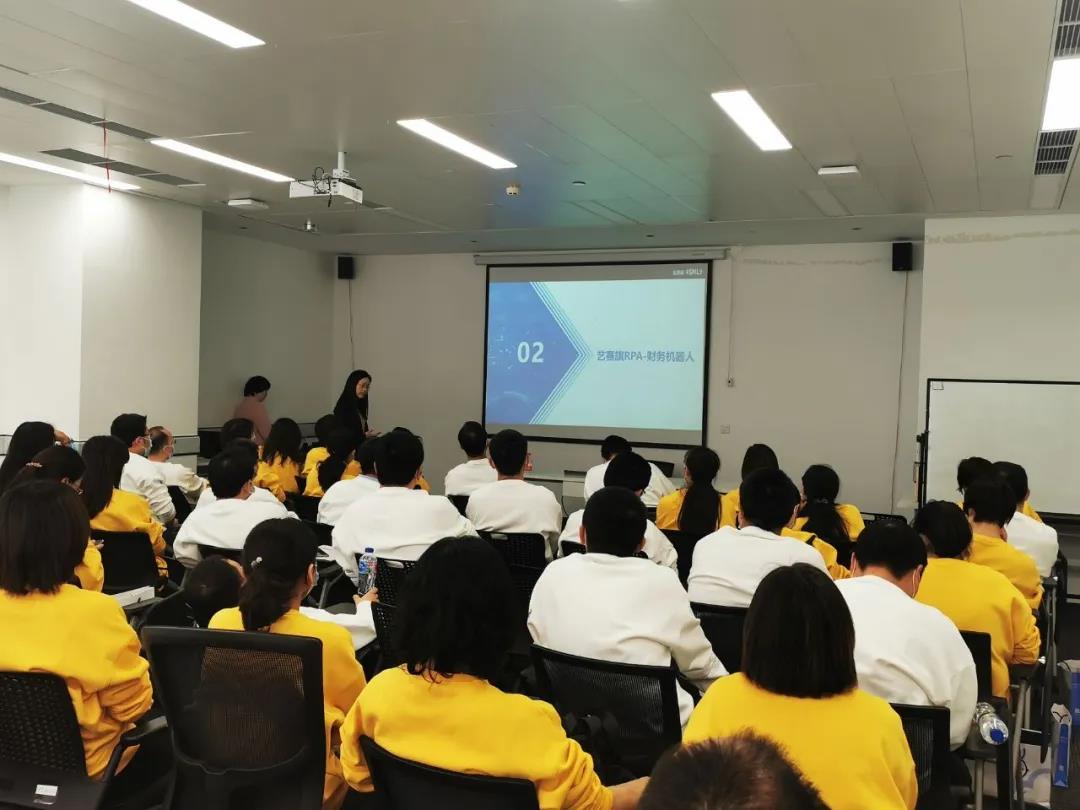 接着艺赛旗高级培训讲师汪老师与黄老师与学员们分别进行了艺赛旗财务场景介绍与艺赛旗RPA应用场景演示方面的培训交流,并为学员们做了财务机器人相关知识的讲解。