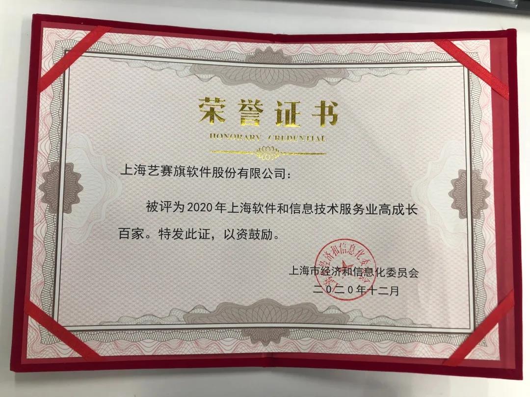 近日,上海市经济和信息化委员会正式公布2020年上海软件和信息技术服务业双百名单。凭借强大软件创新能力及智能的用户场景服务体验,艺赛旗成功入选“2020上海软件和信息技术服务业高成长百家”企业,成为高成长百家企业之一。