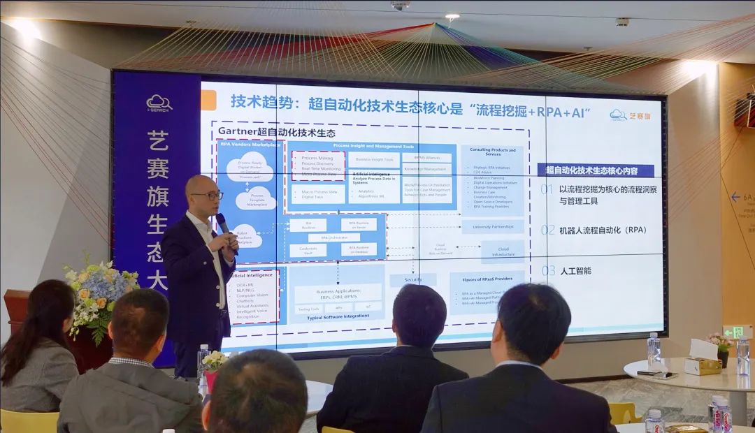 在开场致辞中,艺赛旗CEO唐琦松先生首先表达了对全体合作伙伴最诚挚的谢意。唐总表示:"2022年公司围绕着‘以客户为中心的价值创造,以产品线为中心的经营方针’,采取以单一产品线转向多产品线的经营策略,实现了RPA产品三件套向超自动化产品的升级,并且实现了超自动化产品订阅收入大幅增长的业绩。这一成绩离不开大家的共同努力,尤其是疫情期间让我们面临了前所未有的挑战,但也让我们也看到了众多合作伙伴的坚定支持和付出。
