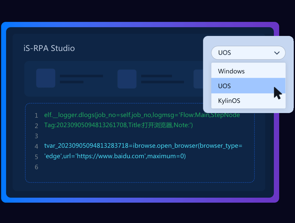 自动化流程可能涉及Windows和国产操作系统,同时需要处理浏览器、本地应用、JAVA等多种类型数据,统一管控和处理难度大。iS-RPA可以在Windows和UOS上部署,统一管理,并且能够拾取所有主流应用,大幅提高自动化的应用范围