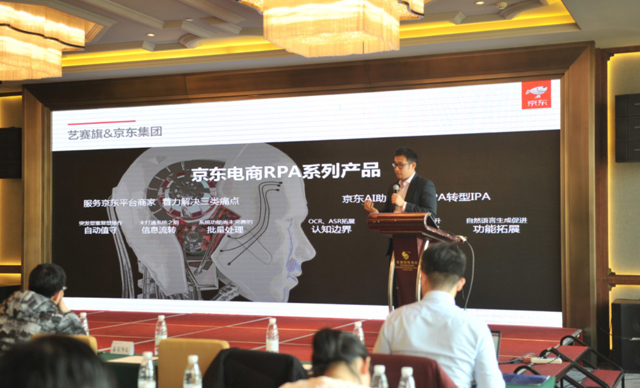 然后,京东集团AI加速器于晓轶总监,为大家分享了京东AI战略规划,京东和艺赛旗围绕RPA,已经开展了多方位合作,针对京东电商业务,RPA已经实现了自动值守、信息流转、批量处理等多个业务场景实践应用。而对于艺赛旗,京东AI也实现了多方位助力:在OCR,ASR识别、机器学习算法提升、自然语言生产促进等方面京东AI加速器全面赋能RPA。