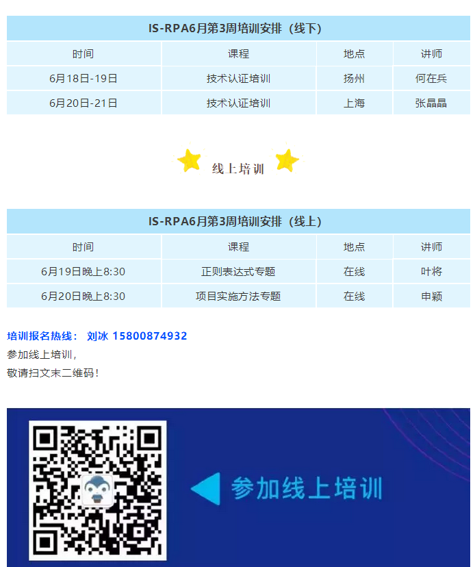 上周,培训活动如火如荼的进行着,大家都踊跃报名参加,大家对iS-RPA的学习真的是非常热情!本周培训课程仍持续开展。