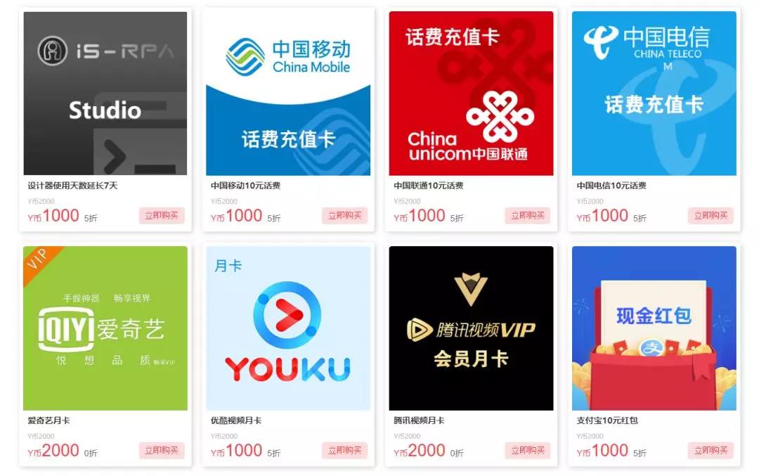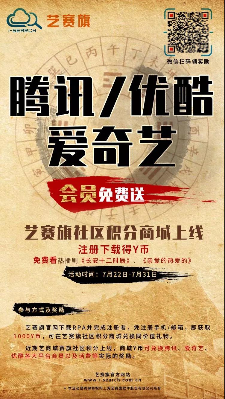 1、目前艺赛旗社区积分商城上线,凡在艺赛旗官网下载(RPA网页搜艺赛旗即可直接下载)并完成注册者,凭注册手机号/邮箱,即获1000Y币,可在艺赛旗社区积分商城兑换腾讯、爱奇艺、优酷各大平台会员以及话费等实际的奖励。