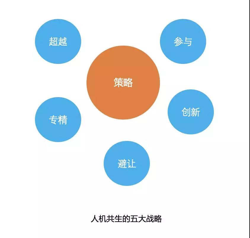 战略者在制定战术的角度,学会制定原则和边界,是考虑的问题之一,作为智能增强的经由之路,让人做人的事,机器做机器做的事,是自主避让的明智之举。我们谈论的“避让”是指,让机器在你的领域中接管他们最擅长的那些任务,与此同时,你应该选择把自己的生计建立在机器无法施展拳脚的其他一些价值形式上。当然在自主避让形成有效避让之后,我们需要安排到具体的工作给计算机或机器人去执行,有效利用他们才是上策,如RPA产品,我们真正要发挥其所存在优势。另外,避让之后我们需要思考哪些工作是机器 无法做到的,或者说我们自己问自己:”什么工作在没有我的情况下计算机无法完成的?“以机器人流程自动化为例,比如:非流程化决策、问询的建议、艺术类工作等。
