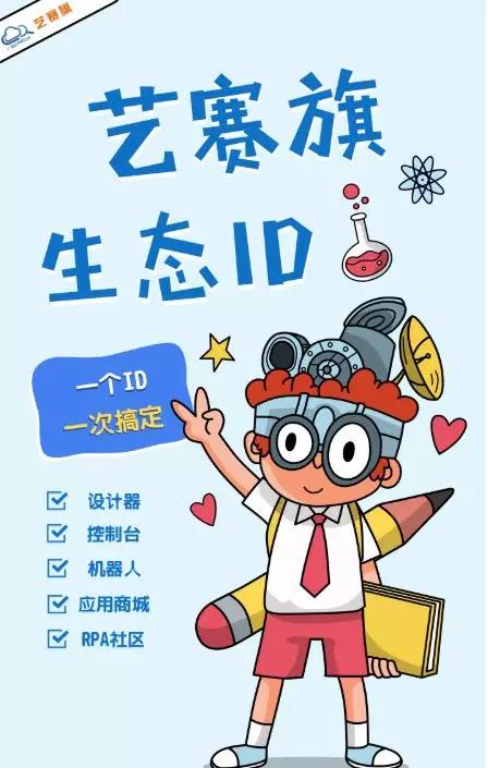 RPA设计器、控制器、应用机器人商城、控制台、RPA社区,一个艺赛旗ID全部搞定。