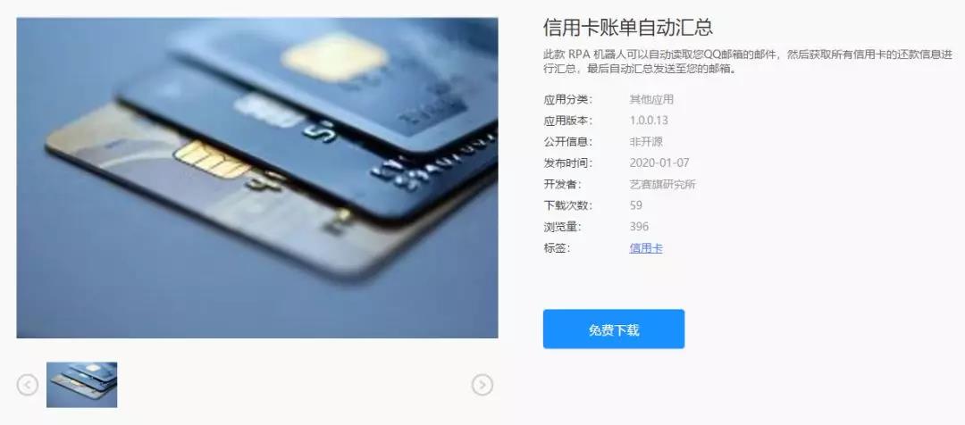 管理一张信用卡是管理,管理十几张也是管理,所以我现在管理十几张信用卡也是如此的轻松,这个要多亏信用卡账单汇总机器人了,此款RPA机器人可以自动读取您的邮件,然后获取所有信用卡的还款信息进行汇总,最后自动汇总发送至您的邮箱,非常便捷智能。