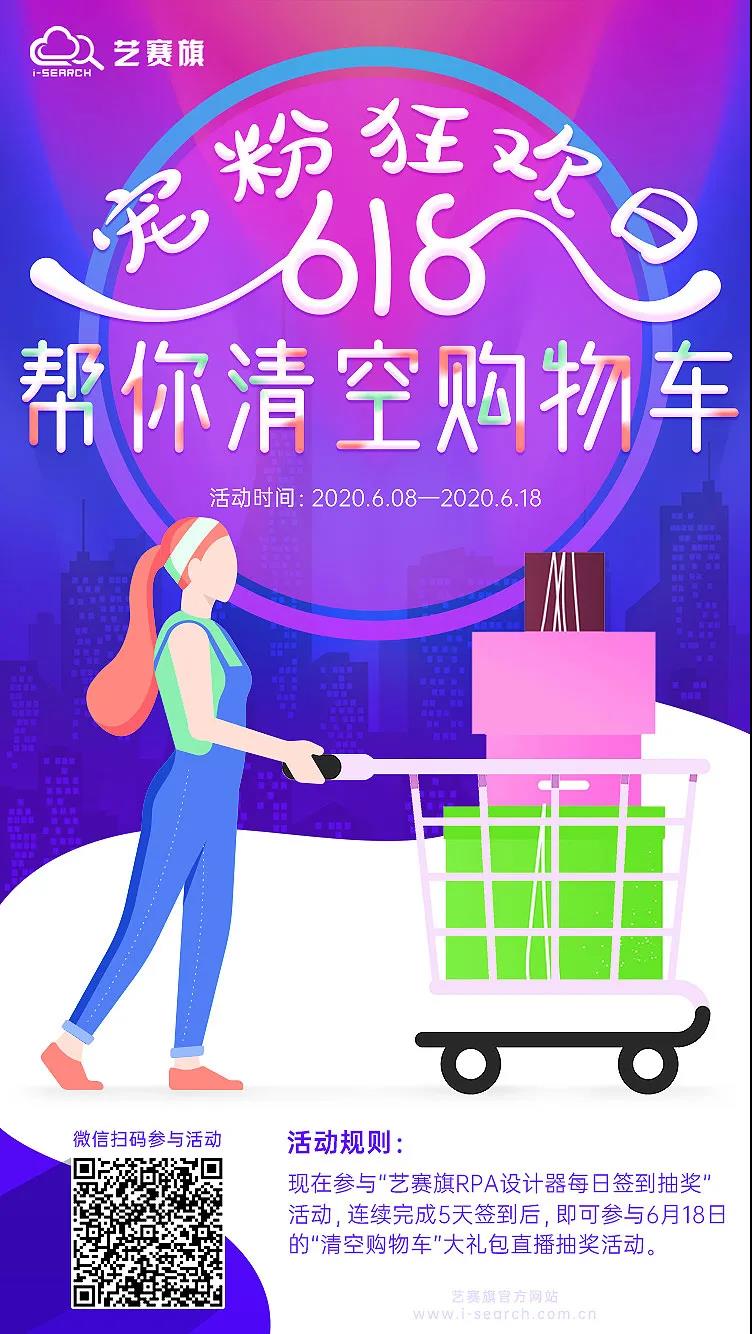 2、连续打卡五天,即可参与抽奖:在艺赛旗设计器中连续签到5天,即可参与6月18日的“清空购物车”直播抽奖;(新老用户皆可参与);