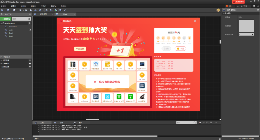 1、下载注册赢取抽奖资格:下载并完成注册艺赛旗RPA设计器,即可获得10元购物补贴。