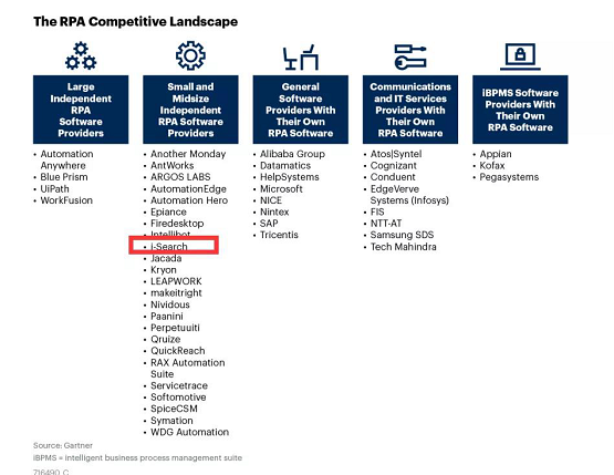 根据Gartner最新报告,海外RPA市场份额被数十家RPA厂商瓜分,随着中国RPA厂商的崛起,越来越多的RPA市场份额将会被中国RPA厂商掌握。在Gartner5月份最新的Competitive Landscape: Robotic Process Automation Software(RPA 竞争格局)报告中,中国有三家RPA厂商位列其中。通过这份报告,我们可以看到中国RPA厂商越来越受到行业的关注和重视。