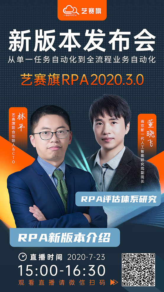 近日,艺赛旗推出了以 “RPA机器人工厂”为创新点的第三代iS-RPA2020.3.0版本,作为RPA厂商,在这一版本中为RPA新增了哪些特色?