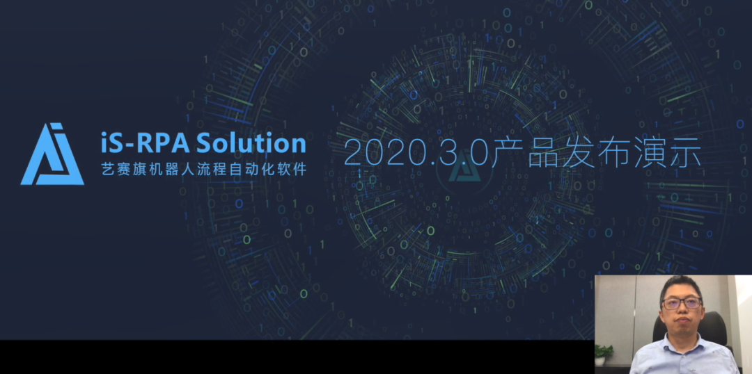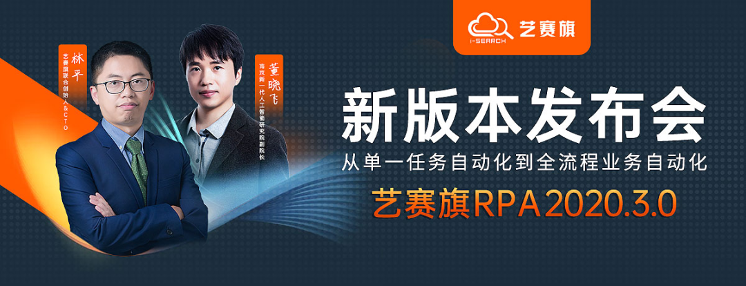 艺赛旗第三代RPA新版本(iS-RPA2020.3.0)发布会已于7月23日下午成功举办。南京新一代人工智能副院长董晓飞先生及艺赛旗联合创始人&CTO林平先生,为我们进行了相关分享和演示。