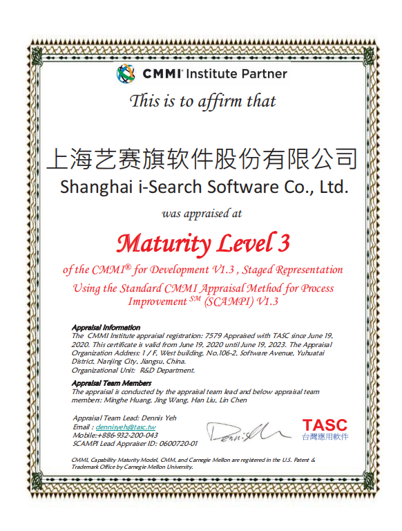 近期艺赛旗顺利通过CMMI3认证,获得国际软件领域认证机构CMMI Institute颁发的证书。