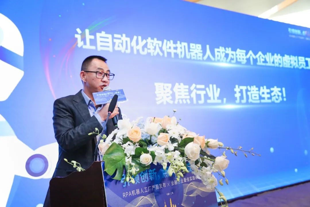 随后,艺赛旗联合创始人&CEO唐琦松先生发表了会议致辞,唐总重点强调:“在今年这个特殊时期,我们看到中国作为世界第二大经济体的发展依旧坚挺有力。中国的市场发展巨大,相信未来RPA在中国的应用规模也将越来越大。在18年,艺赛旗推出了机器人流程自动化解决方案,开启了国产化RPA软件产品市场的序幕;在19年,艺赛旗推出了中国RPA市场生态模式,开启了中国RPA市场生态建设之路;在今年,艺赛旗“聚焦行业,打造生态”并推出机器人工厂解决方案,更是为中国RPA行业商业化规模化落地树立了标杆作用。”