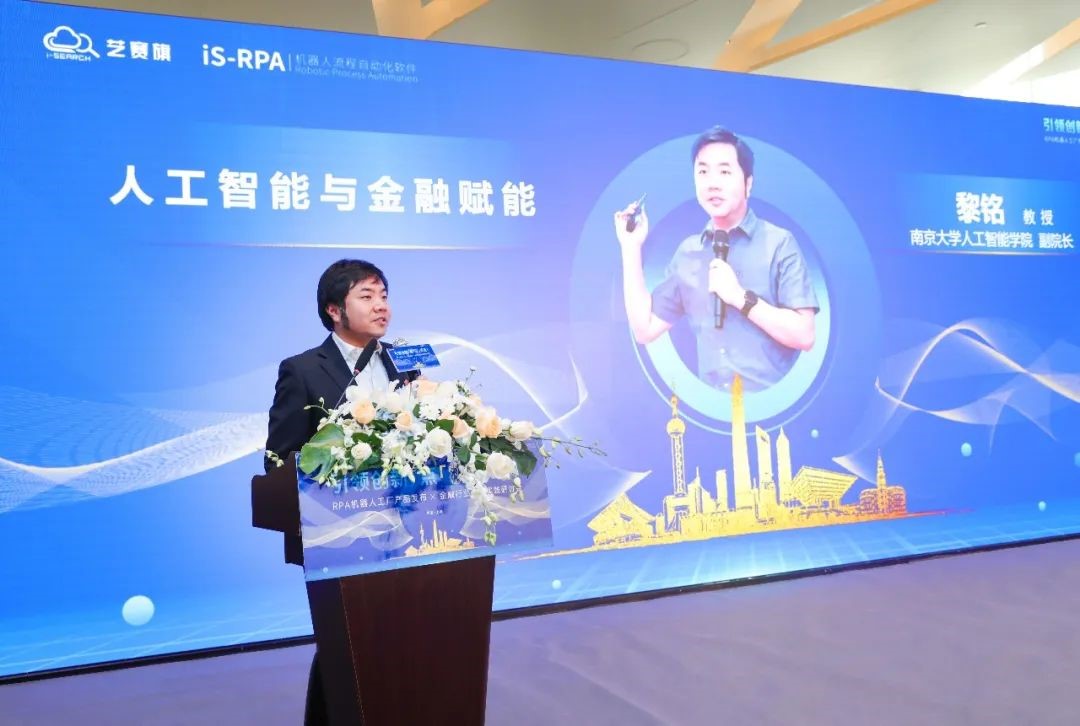 南京大学人工智能学院副院长黎铭教授,从人工智能机器学习的角度为大家解析了RPA的意义,并针对RPA的未来发展分享了自己的学术思考。并以“风险控制、业务效能提升、金融安全”等为例,介绍了人工智能应用的意义,艺赛旗RPA已经积极的和南大人工智能学院开启了合作。未来,RPA和AI相结合的解决方案会越来越多。