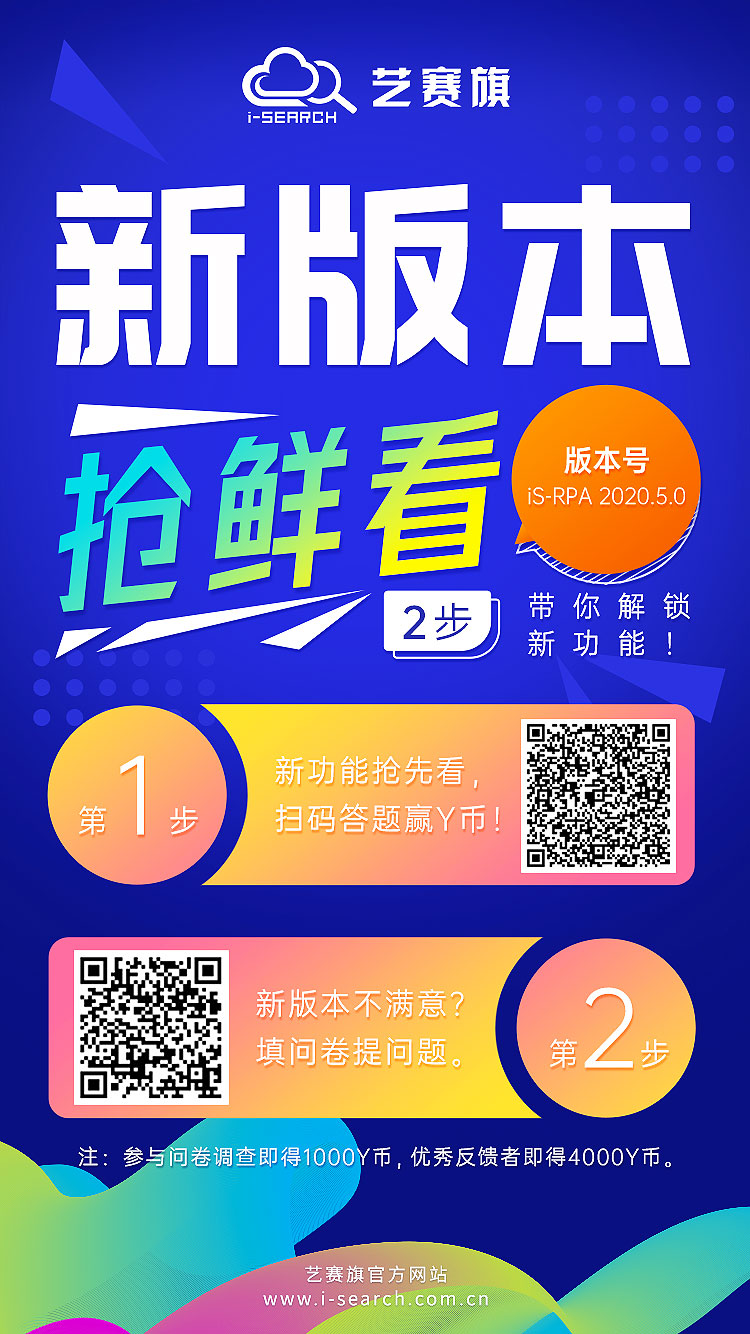 各位童鞋大家好,iS-RPA 2020.5.0 已经正式发布了,我们的有奖活动当然也要跟上,