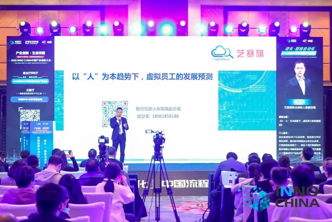 活动现场,艺赛旗联合创始人&高级副总裁胡立军在流程自动化演讲主论坛上发表了主题为“RPA中国—以人为本趋势下虚拟员工的发展预测”的演讲。