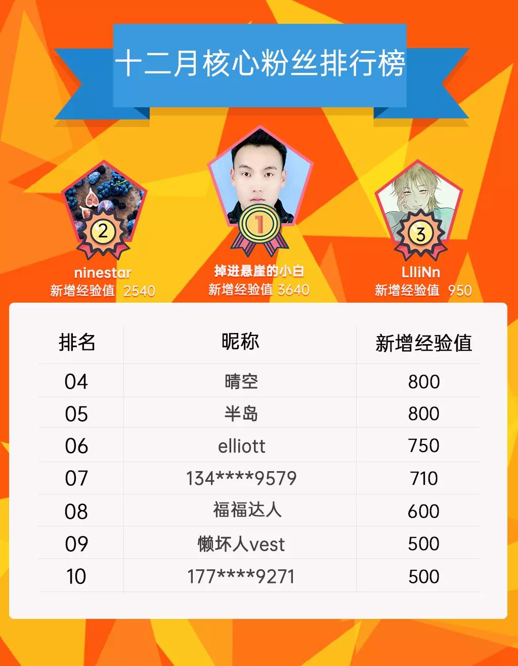 还有12月份的月度榜单也来啦~(评选为月度核心粉丝的小伙伴可获得到10000Y币,月度互助问答榜上榜的小伙伴也可以获得5000Y币。