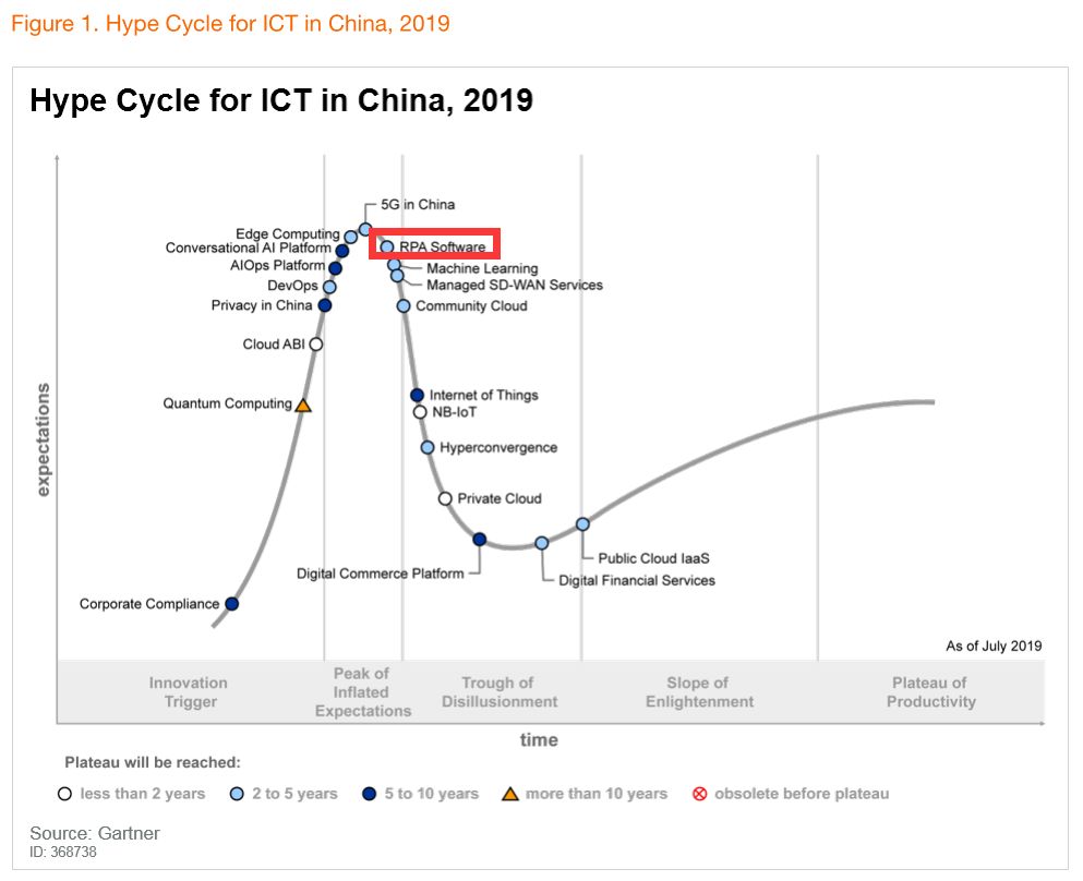 3、 Gartner's "Hype Cycle" Analysis of RPA
