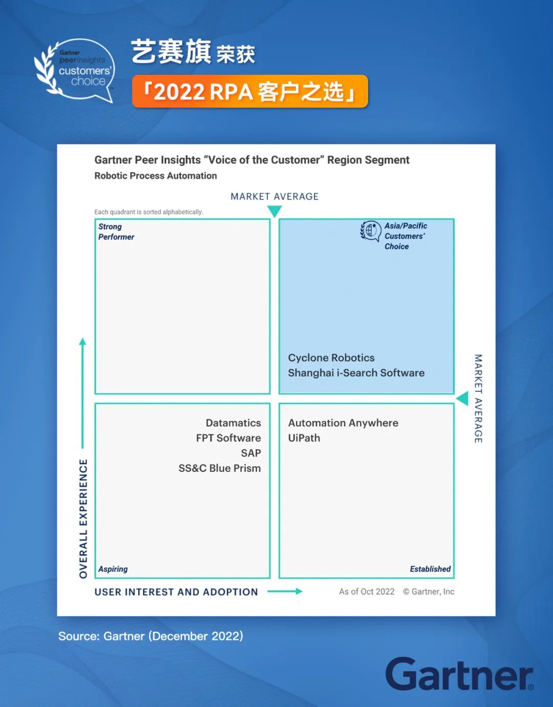 The "Gartner RPA Customer Selection" is based on customers' evaluations of enterprise products and services, providing multi-dimensional supplier capability evaluation and procurement reference for global enterprises. This "Gartner RPA Customer Selection" report takes the most recent year as the evaluation cycle and provides insights into 1807 customer reviews from peer companies. In the end, i-Search gained high recognition from customers with its outstanding market performance, excellent product strength, and comprehensive service system.