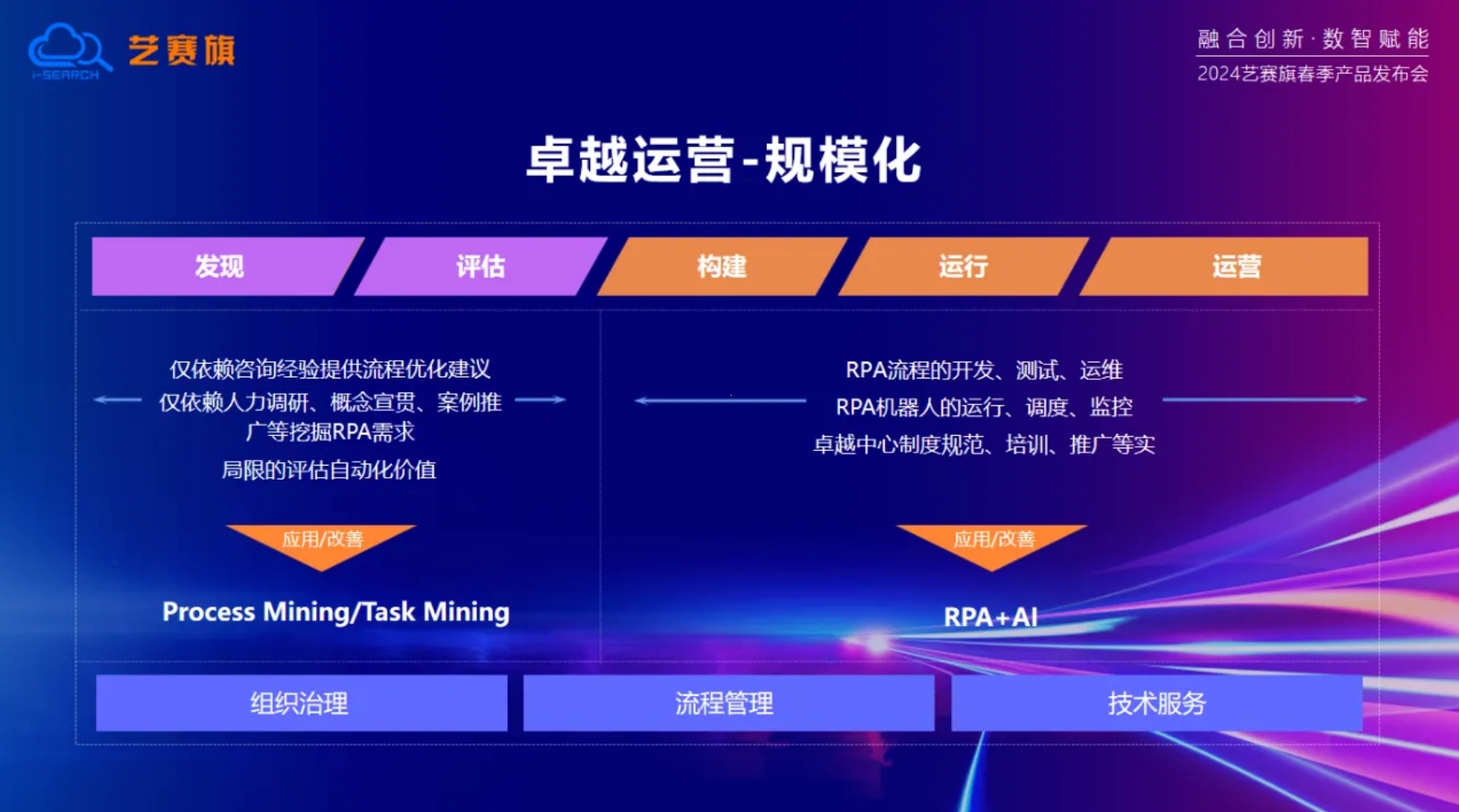 Different from the single product line of many RPA manufacturers, Yisai Flag relies on its own technological foundation, with the product concept of easy learning, easy use, and stability. It has proactively built a super automation product matrix represented by three core product lines: iS-RPA (Robot Process Automation), iS-CDA (Desktop Behavior Analysis), and iS-RPM (Robot Process Mining). In April of this year, it officially launched the "Enterprise level Intelligent Super Automation Platform". These three major products work together to form a highly automated solution from "discovery evaluation construction operation", helping customers achieve comprehensive process optimization and problem solving.