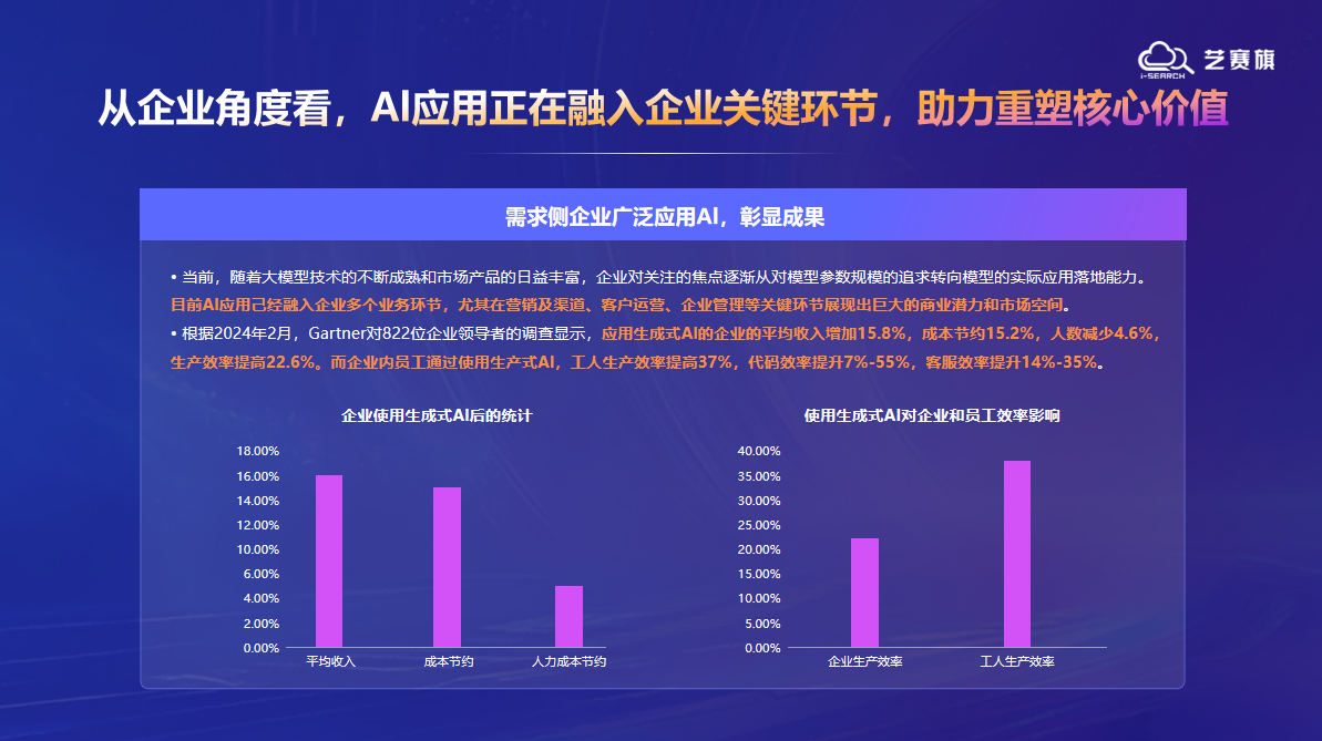 Combining the 15 years of automation technology accumulation of I-Search, Wu Xin highlighted the landing achievements of AI technology in industrial scenarios. He mentioned that the application of generative AI has brought significant benefits to enterprises - an average income increase of 15.8%, cost savings of 15.2%, and a production efficiency increase of 22.6%, with a 37% increase in worker productivity. In the contract review scenario, the intelligent agent developed by I-Search compresses the review time from 3 hours to 10 minutes through built-in industry knowledge base and real-time compliance verification, with a key risk identification rate of over 90% and an efficiency improvement of 80%; In the monitoring of raw material prices and recruitment management, the AI driven RPA full process automation solution achieves 24/7 operation with an accuracy rate of 100%, significantly reducing labor costs.