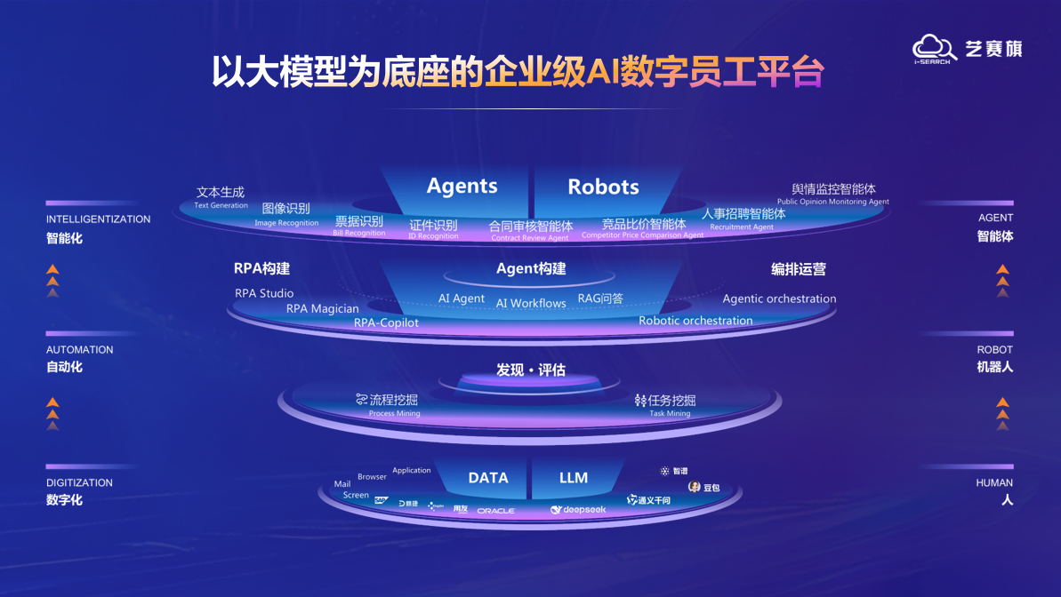 In response to the challenges faced by industrial enterprises in AI applications, such as scene fragmentation, data silos, and unequal distribution of computing power, Wu Xin shared the solution path of I-Search: building an enterprise level AI digital employee platform based on a large model, sorting out business pain points through process mining technology, and combining RPA and AI agents to achieve a "perception decision execution" closed loop. At present, the solution has been implemented in multiple industries such as finance, telecommunications, and manufacturing, forming an intelligent solution covering the entire chain of human resources, finance, supply chain, marketing, etc. I-Search, with its self-developed process mining technology and top market share of RPA products in China, is continuously providing solid support for the digital transformation of industrial enterprises.