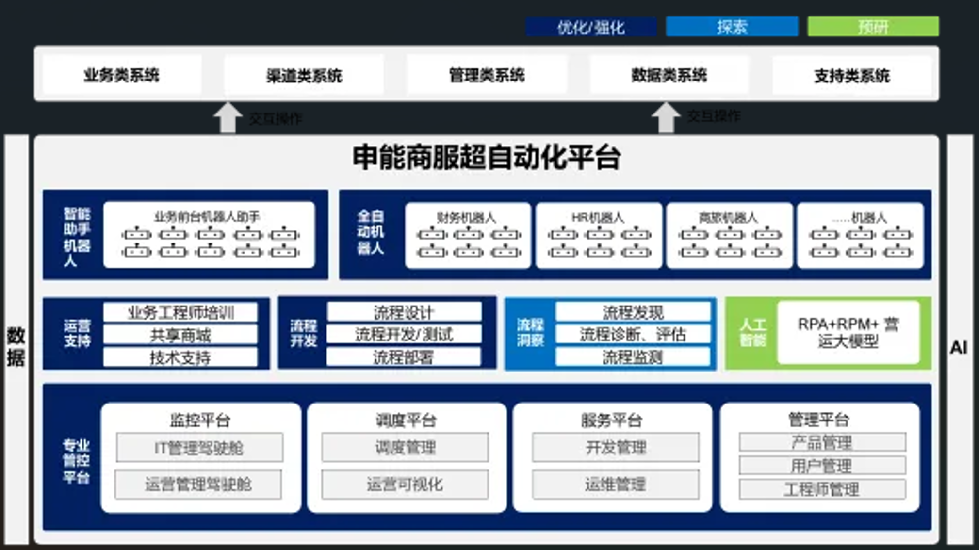 Based on the group's shared service system, Shenneng commercial service has prospectively planned to integrate RPA, process mining AI、 The super automation platform with large model and other technical capabilities drives the intelligent upgrading of the group's operation mode. The platform provides powerful automated process development and optimization capabilities, enabling business personnel to flexibly build, adjust and optimize automated processes and quickly adapt to business changes.