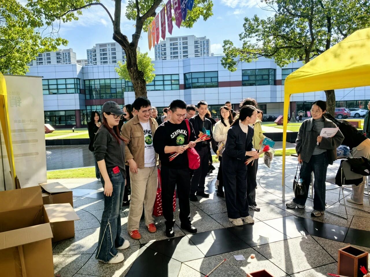 There were crowds in front of the exhibition area of the art competition flag in the market, and a unique throwing pot game attracted people to stop and watch. The throwing pot is a classic throwing game for ancient literati and bureaucrats at banquets. It is both entertaining and ceremonial. Players need to throw arrows into the pot from a specified distance, and the winner will be determined by the number of arrows. In order to fit the atmosphere of the market, the i-Search simplified the rules: each person can receive 10 arrows, throw at the starting point 1.5 meters away, and win customized peripheral and exquisite gifts as long as 3 arrows are successfully invested.