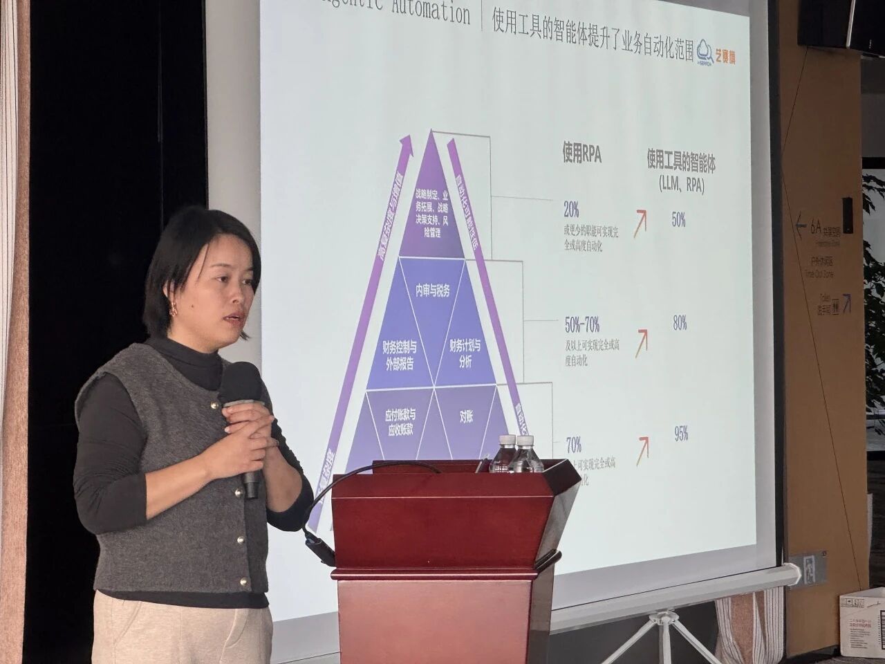 In the RPA immersive experience exhibition hall, xufeitong, the director of the marketing department of i-Search, comprehensively showed the students how the enterprise level intelligent automation platform of yisaiqi realized the whole process of "cognition decision execution" closed loop in various practice scenarios through system demonstration and scenario based cases. The vivid technology scenes and real industry applications have given students a concrete understanding of the intelligent agent automation technology.