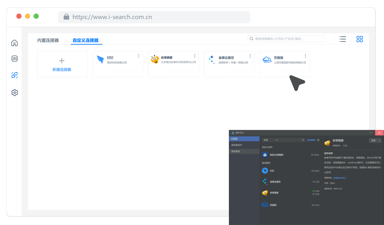 通过集成中心,可实现API组件与UI自动化、AI能力组件的无缝融合,实现跨系统、多能力的自动化流程开发设计,跨系统连接更轻松